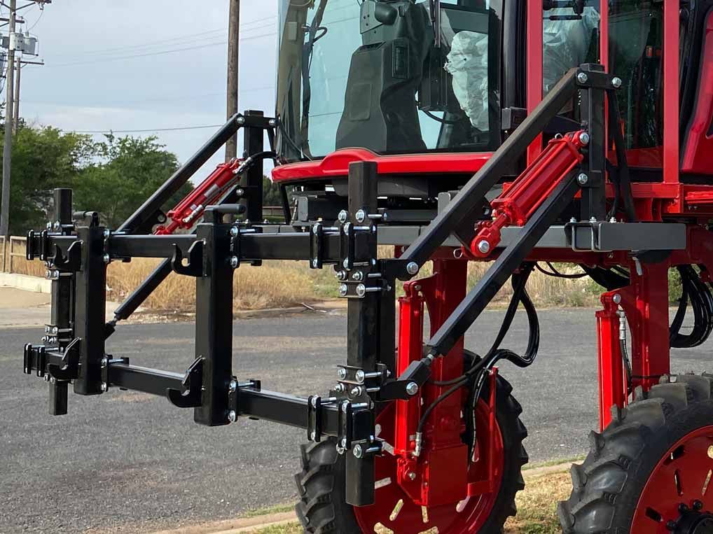 30ft. hydraulically folding spray boom. Folds under 120in. wide for legal transportation.
